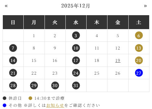 ※年内最終日の12/27(土)は、13時で診療を終了いたします。