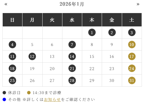 ※年始は1/5(月)より、通常通り診療を開始いたします。